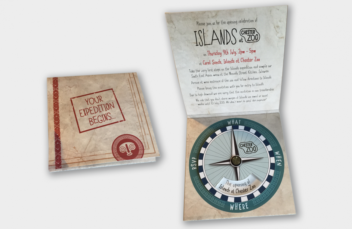 Using the existing ‘adventure’ campaign I came up with an interactive compass invite – you rotate the compass to discover the details of the opening event.